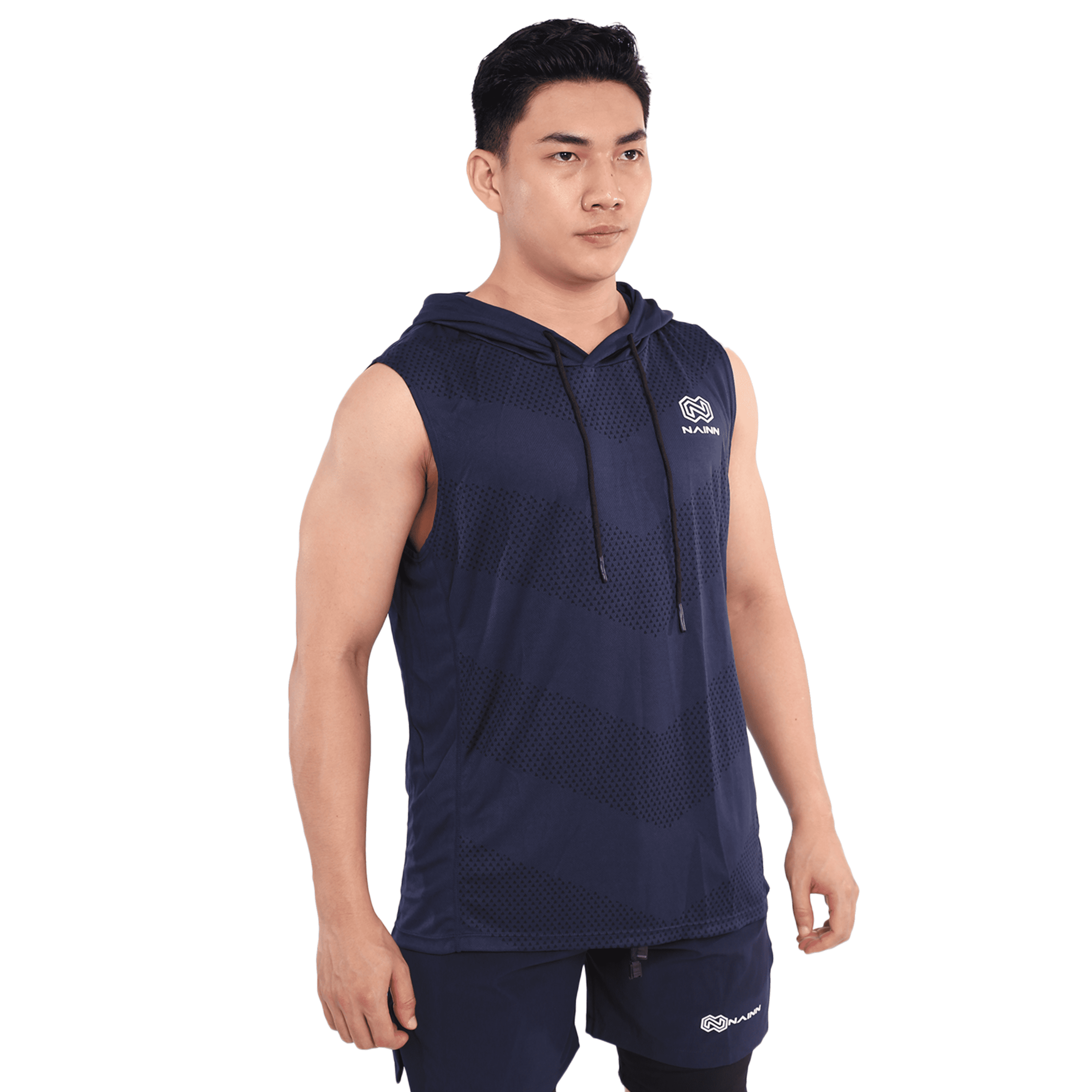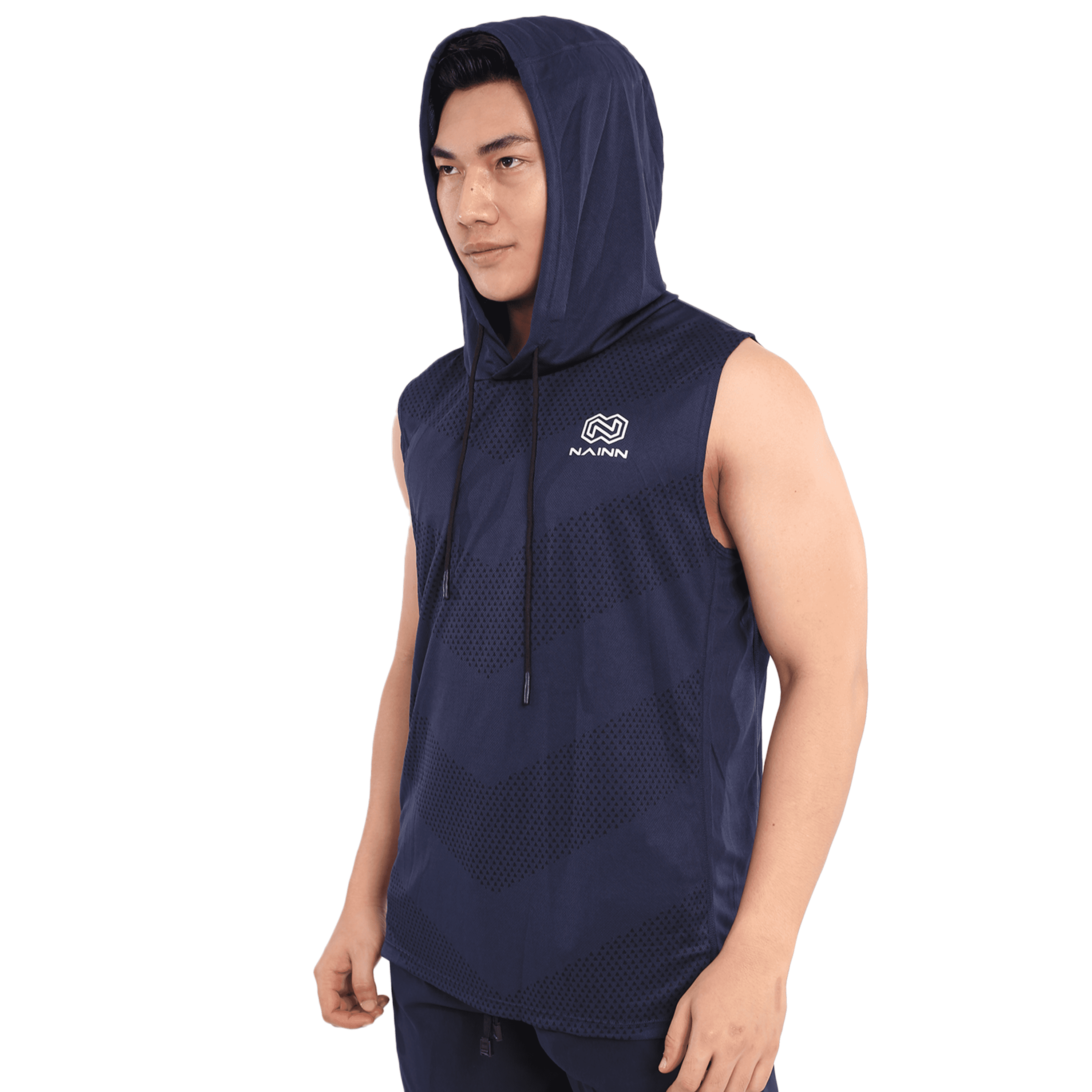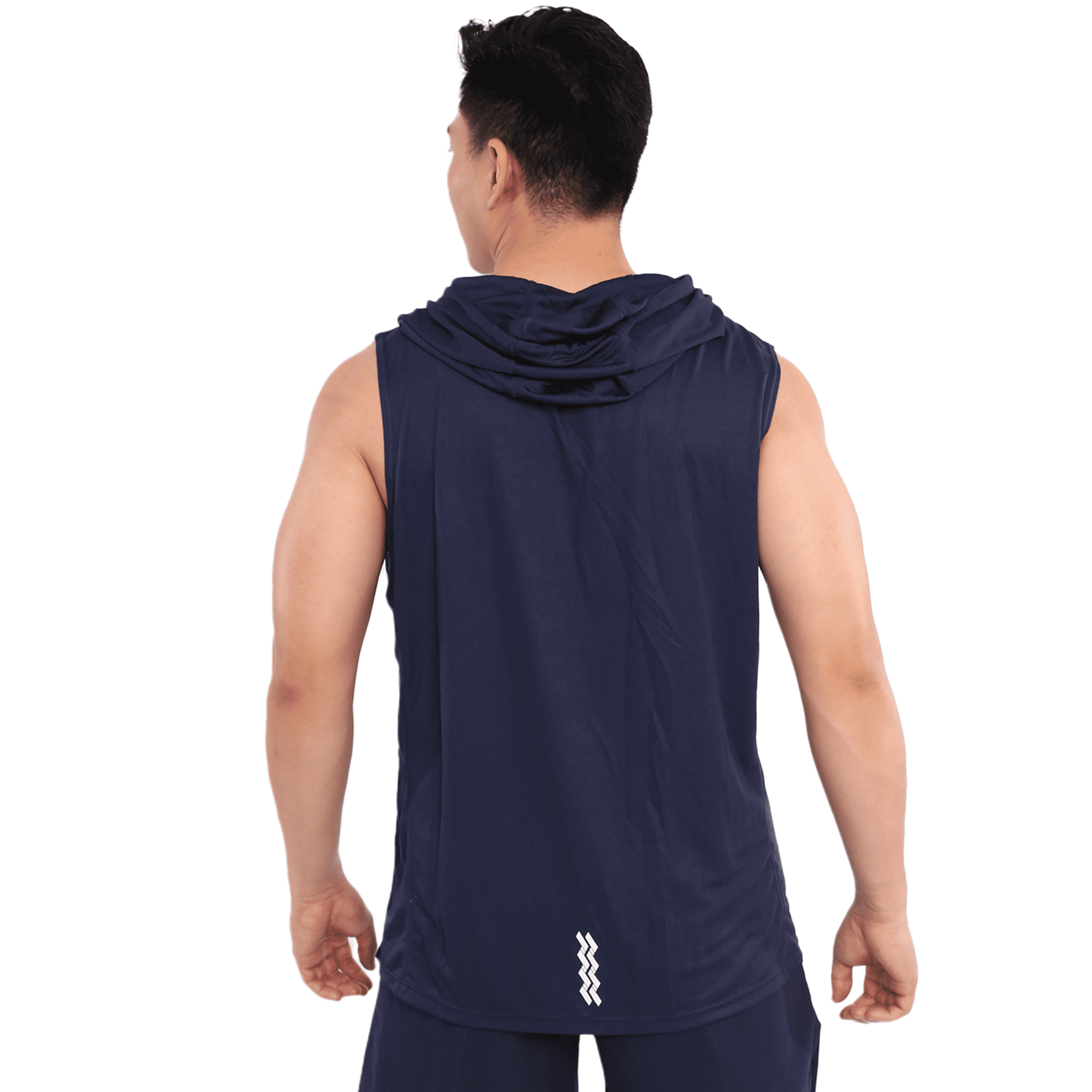 Hoodie sleveless berwarna navy, cocok dipakai saat berolahraga
