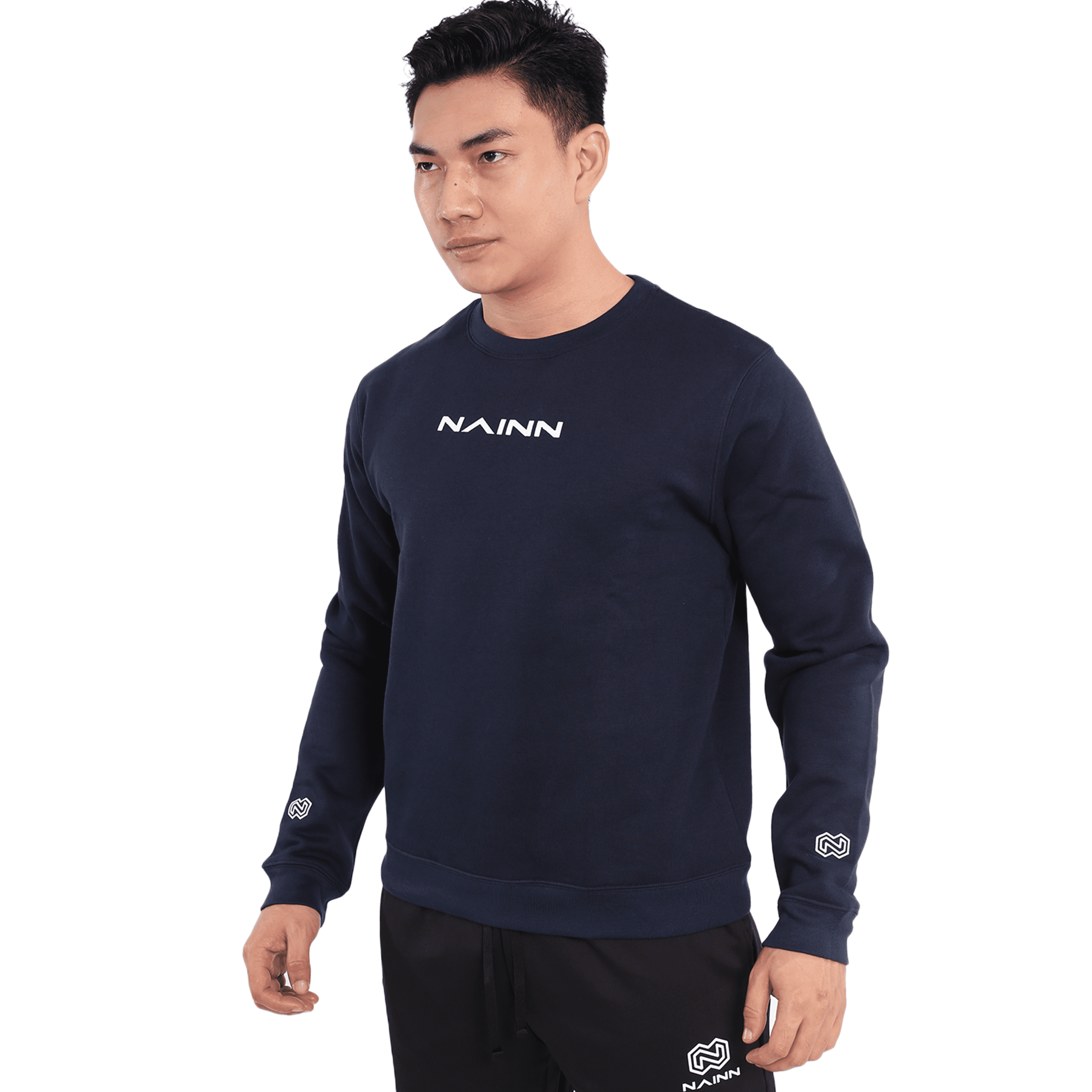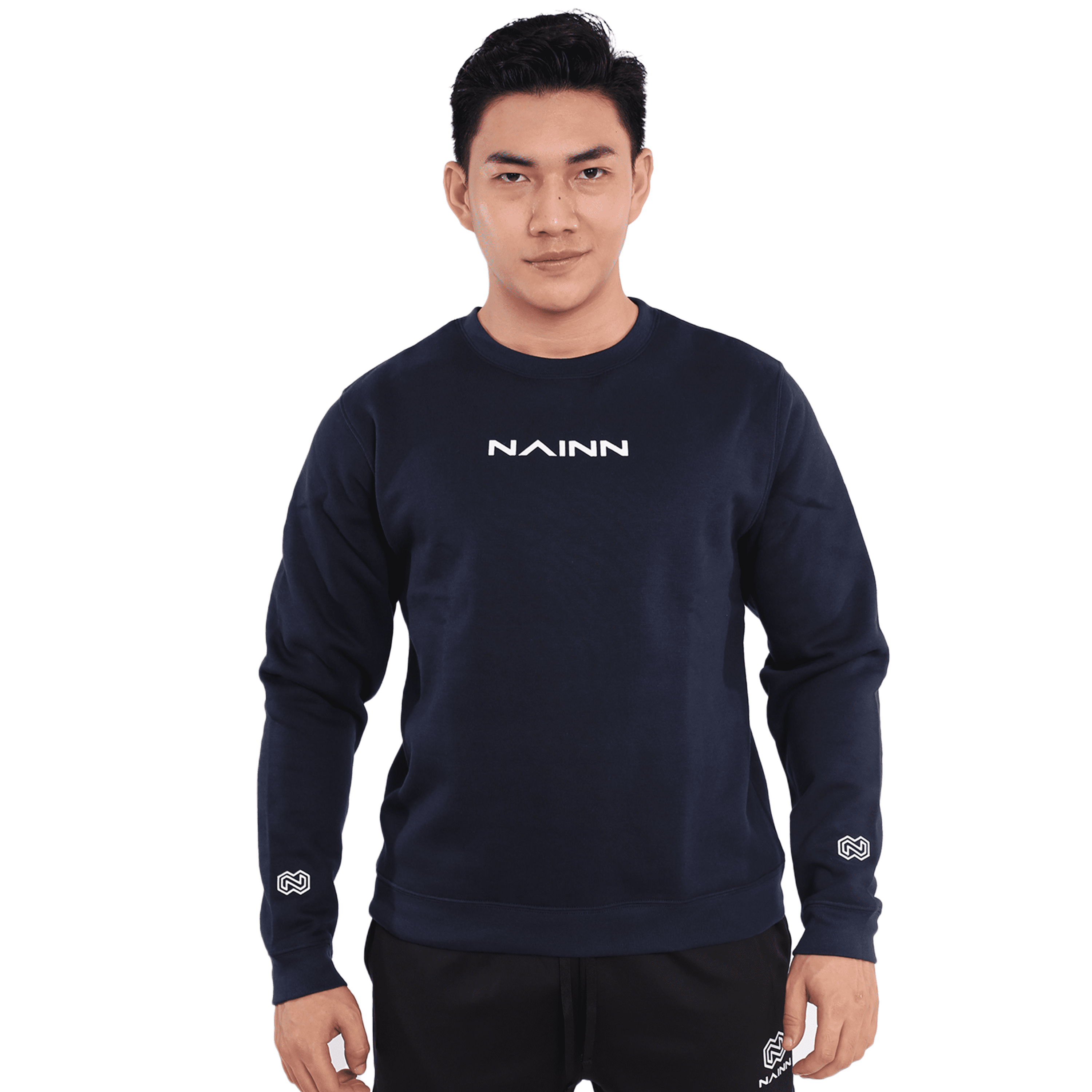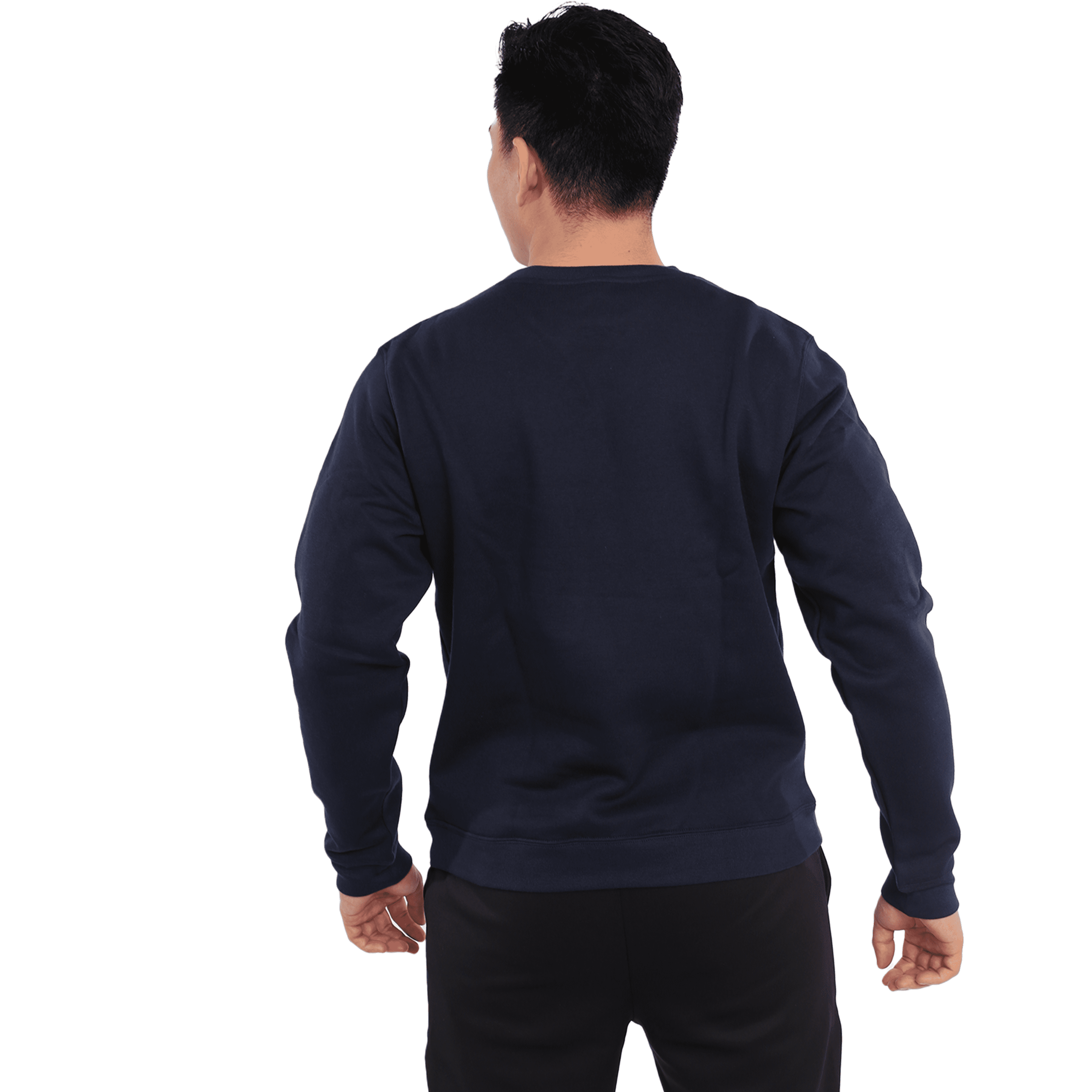 Jaket luaran model tarikan tanpa penutup kepala warna biru gelap. Cocok untuk dipakai saat bersantai maupun untuk berolahraga