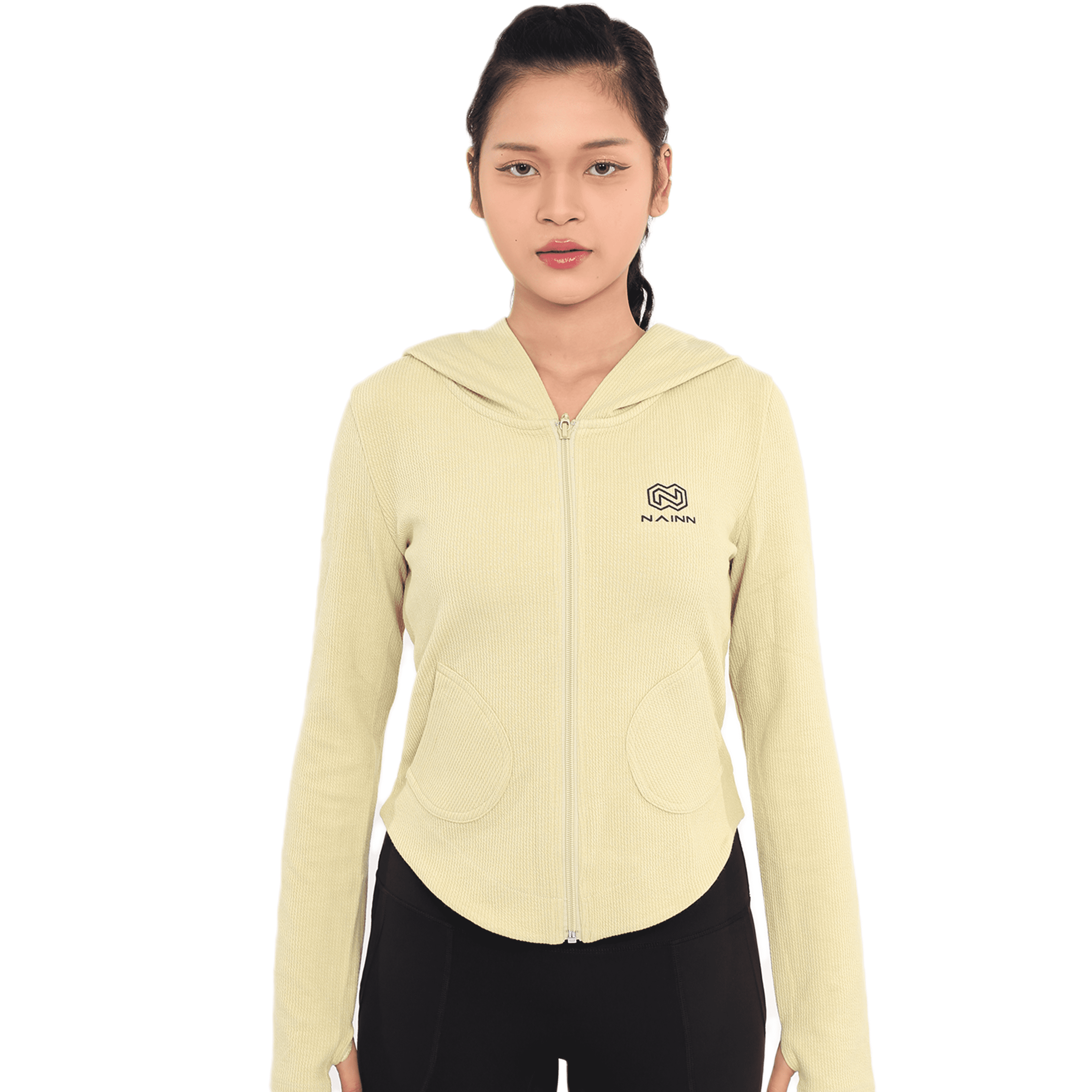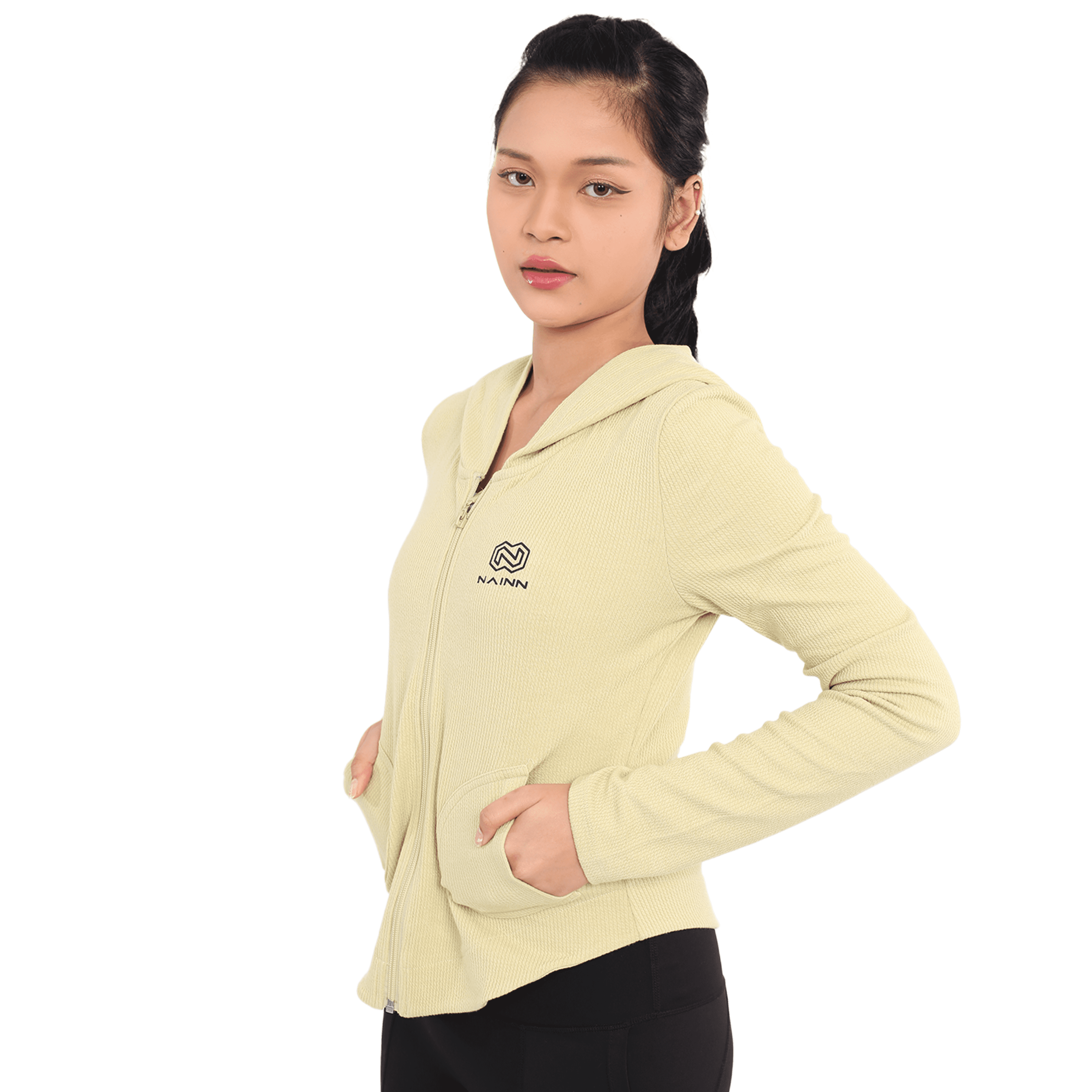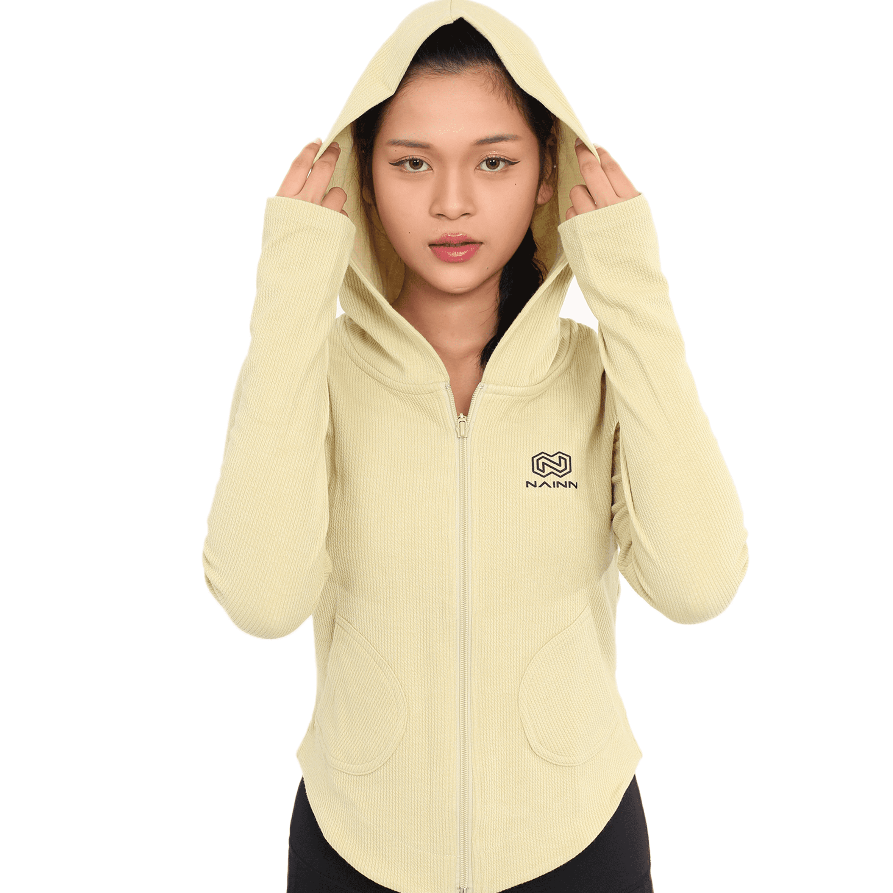 Hoodie Jacket yang terbuat dari bahan polyester, viscose fibre, dan spandex. Cocok untuk dipakai beraktivitas dan berolahraga