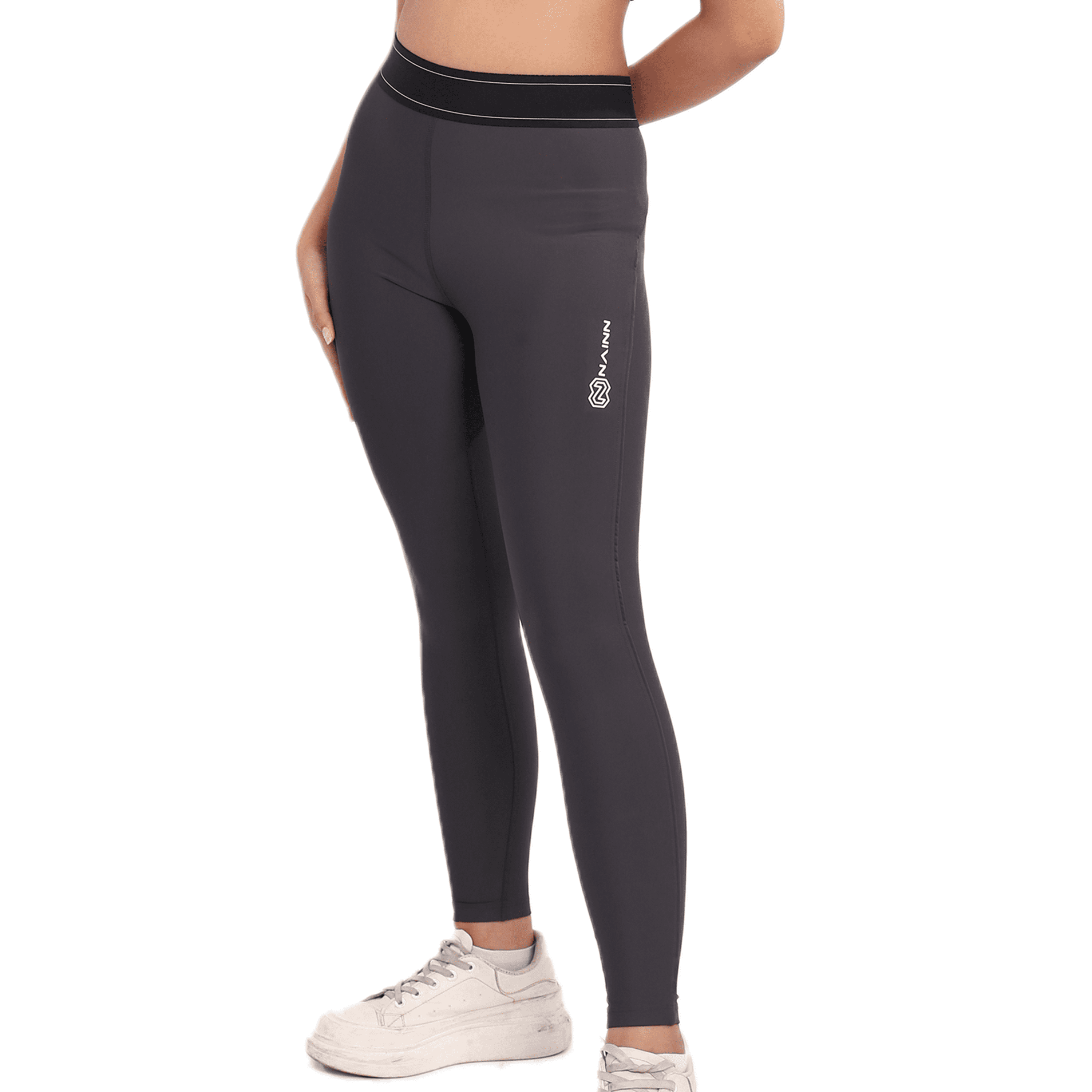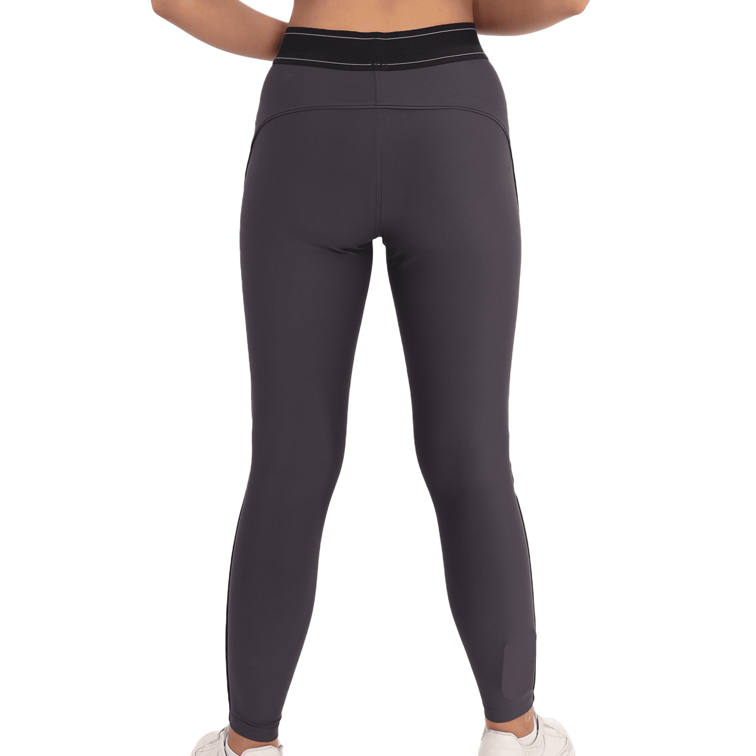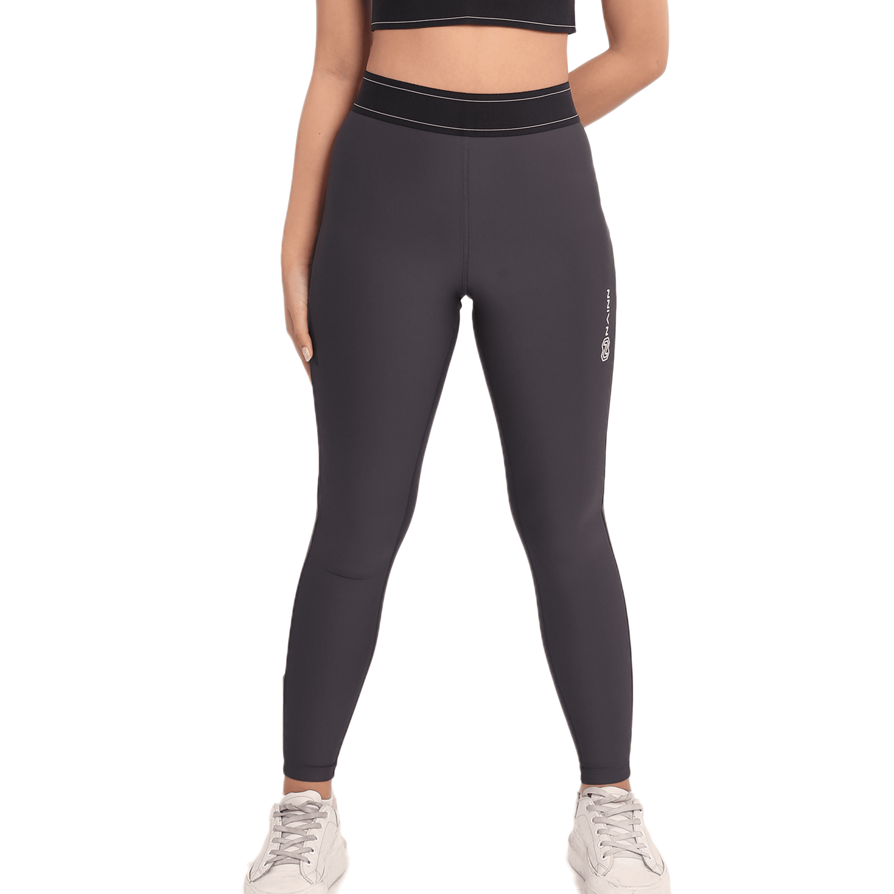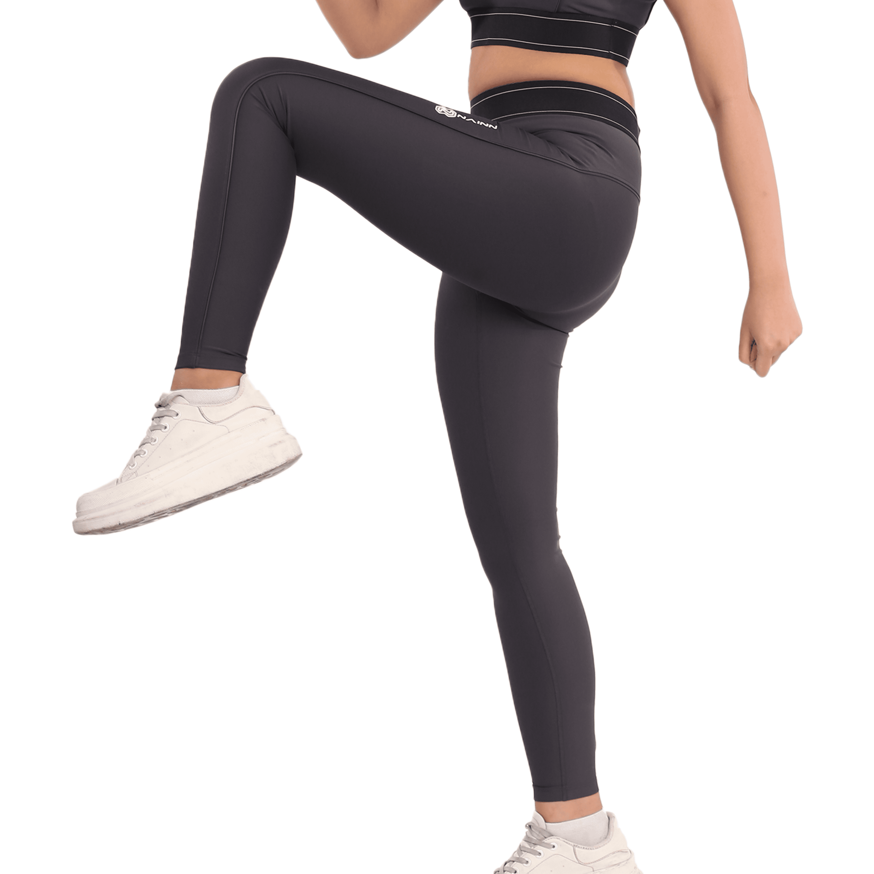 Legging berwarna dark grey yang cocok dipakai untuk beraktivitas olahraga, memiliki teknologi quick dry yang cepat untuk menyerap keringat