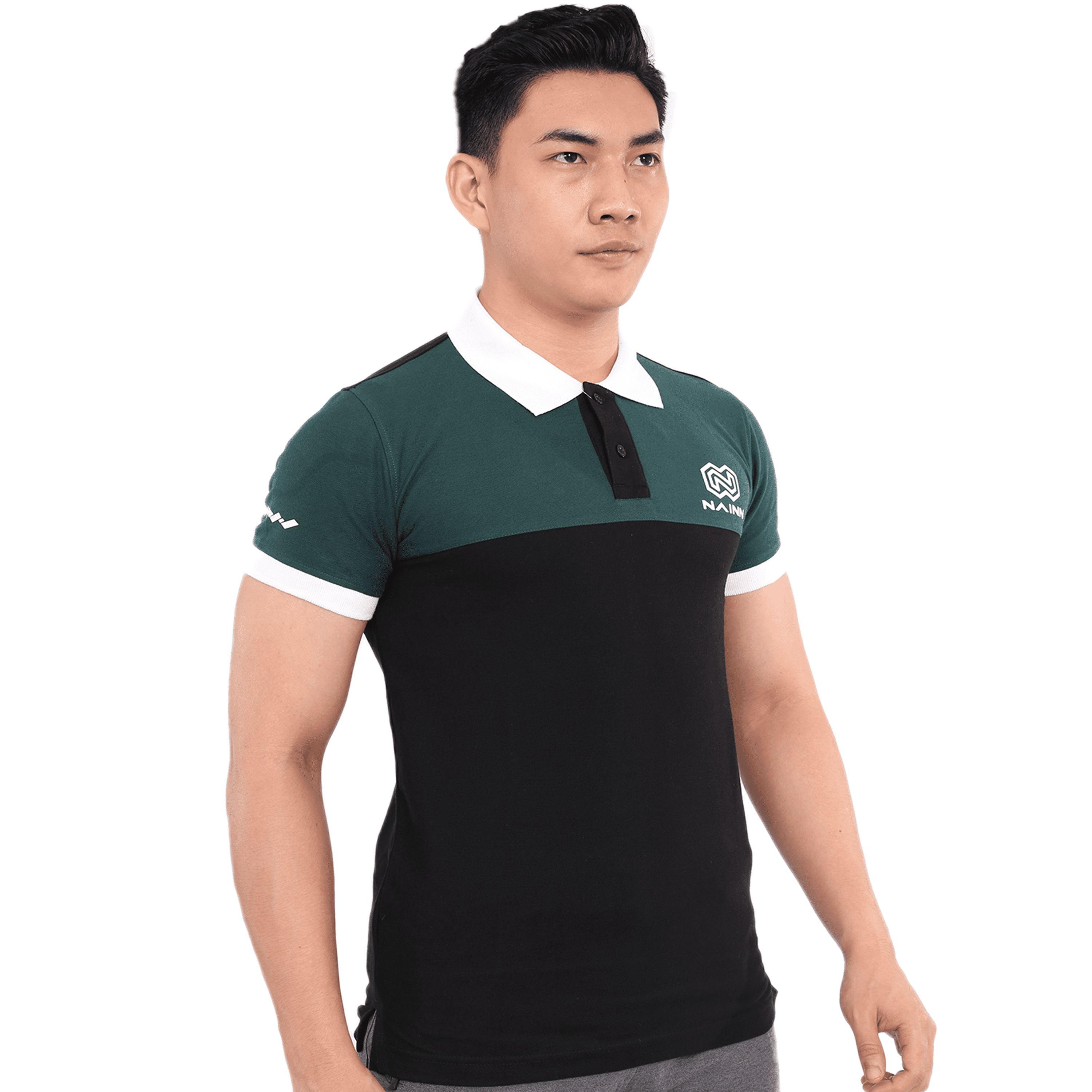Atasan model berkerah dengan model variasi dua warna hitam dan hijau , cocok untuk digunakan kegiatan santai maupun kegiatan kerja