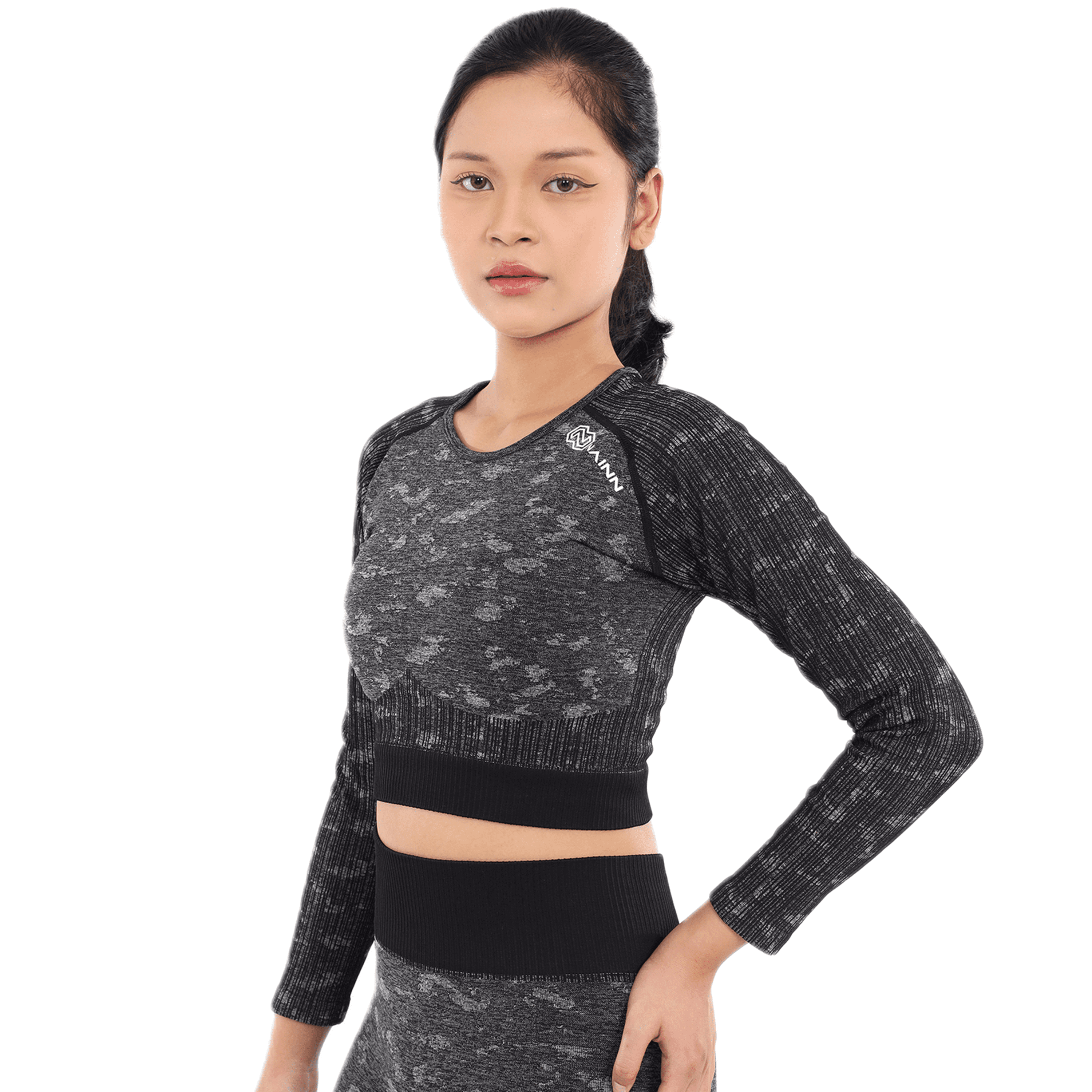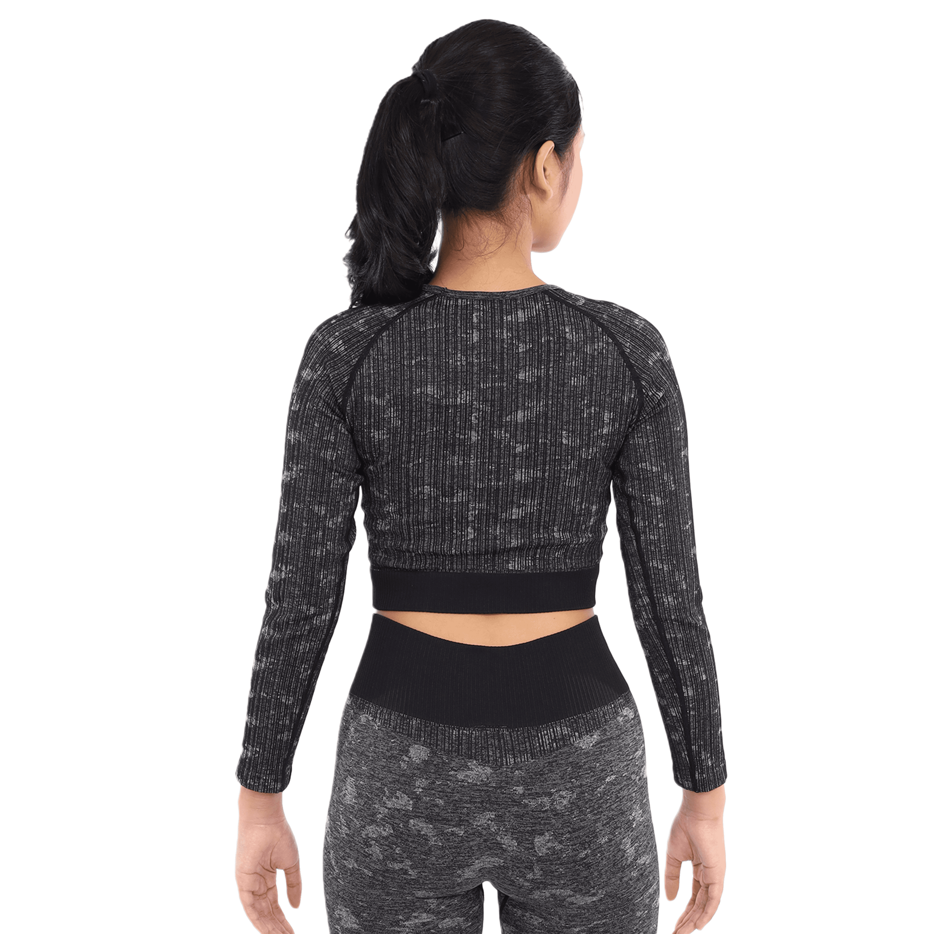 Sport Bra yang memiliki desain pattern camo dan lengan panjang, cocok untuk beraktivitas olahraga apapun